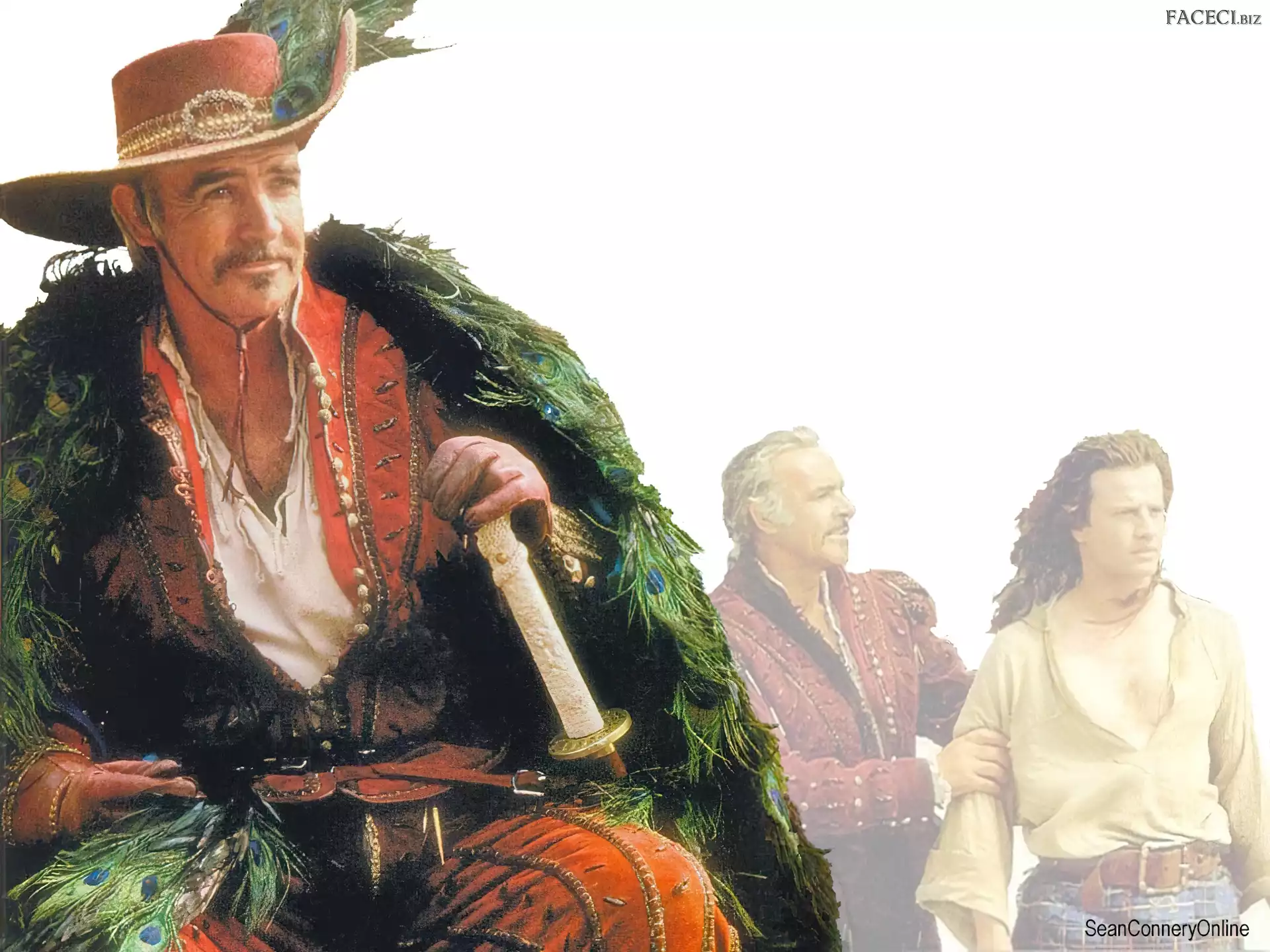 twarze, Sean Connery, miecz Sean Connery, ciemne oczy Sean Connery, wąsy Sean Connery, siwa broda Sean Connery, płyta Sean Connery, zdjęcia Sean Connery, koszula w paski Sean Connery, Kapelusz Sean Connery, pistolet Sean Connery, para Sean Connery, kobieta Sean Connery, czarny strój Sean Connery, Kapelusz Sean Connery, statuetka